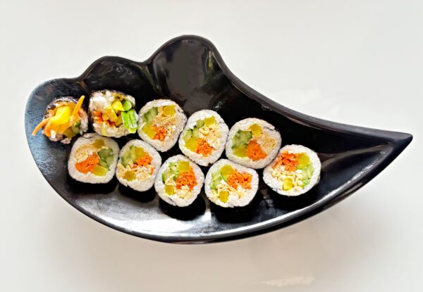 Gurke, Ei, Karotte, frisches Gemüse, Reis, Kimbap